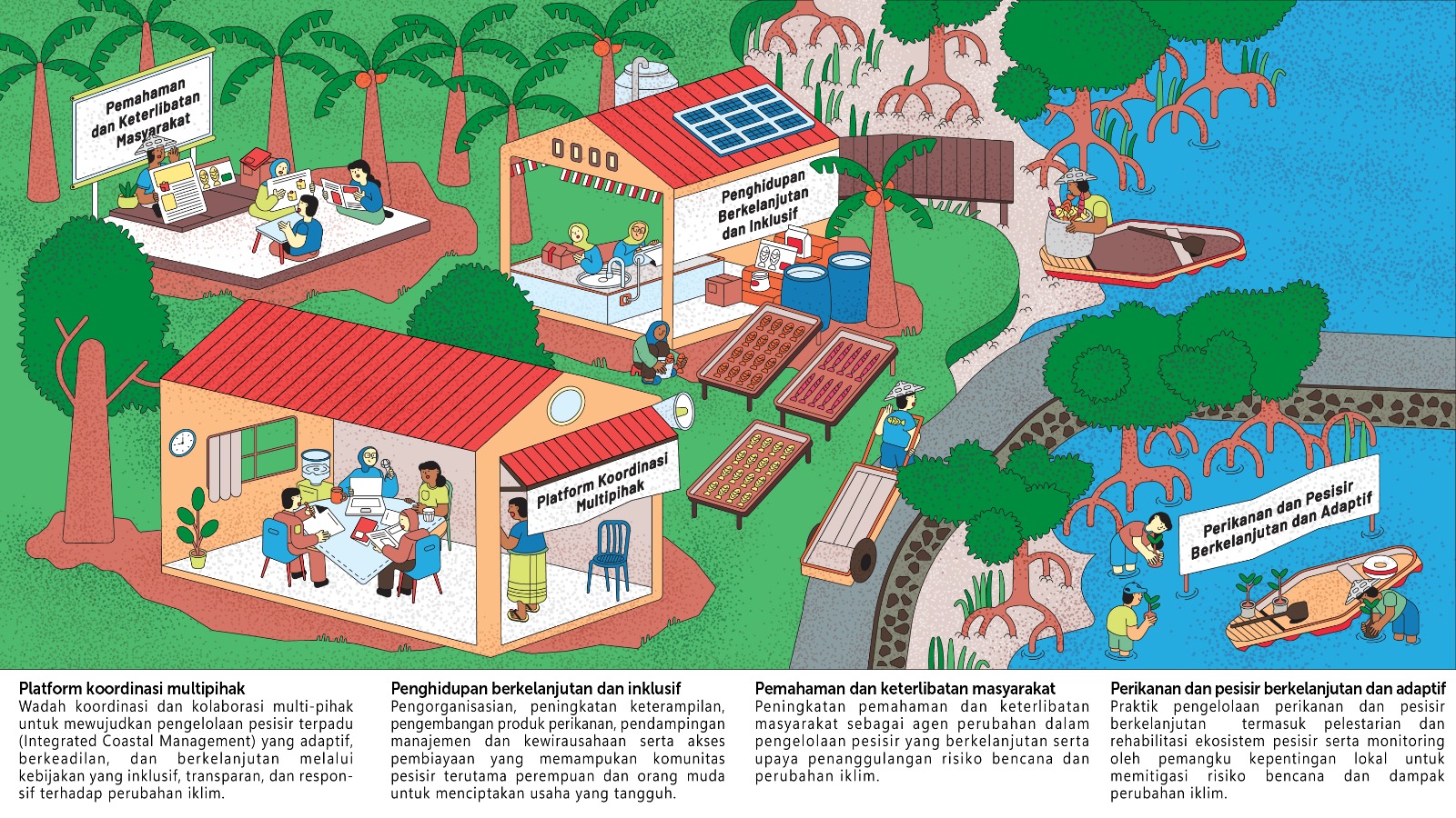 Peningkatan pemahaman dan keterlibatan masyarakat sebagai agen perubahan dalam pengelolaan pesisir yang berkelanjutan serta upaya penanggulangan risiko bencana dan perubahan iklim.